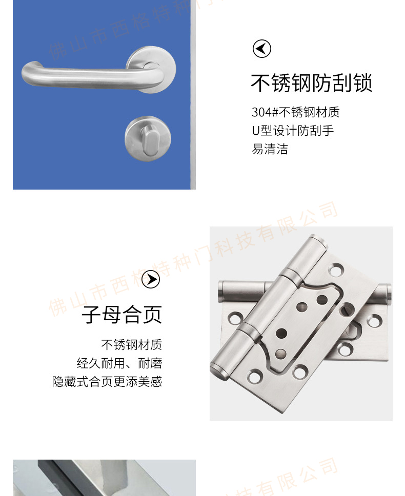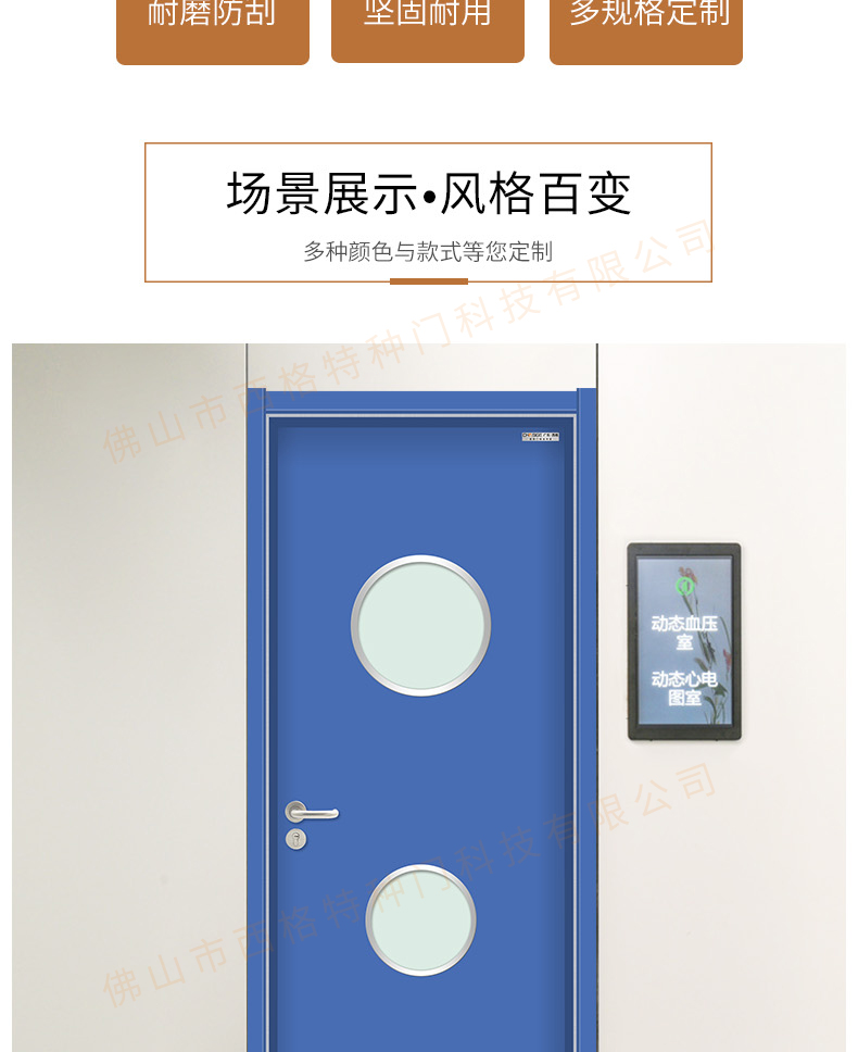 產品簡介:chnsige西格特種門,專業生產醫院門,醫院診室門,醫院辦公室門,醫院衛生間門,木質醫院門,鋼質醫院門,多鐘款式、顏色,尺寸可定制。